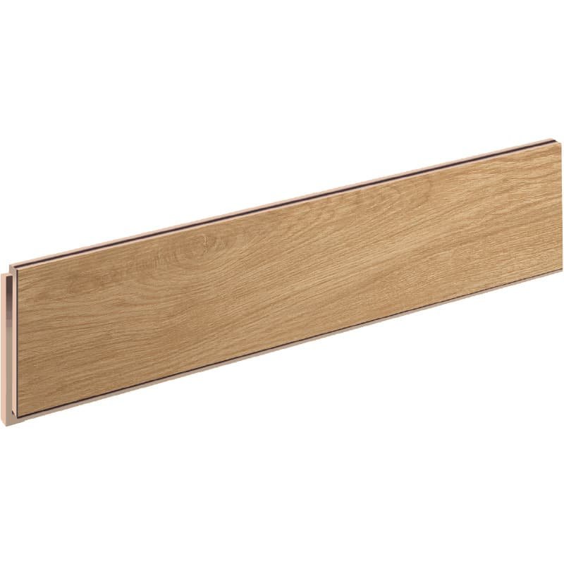 Vinylové schody v dekoru Ecoline Step 9509 Dub classic, dílec CP – podstupnice s pravou bočnicí, vlevo zámek.