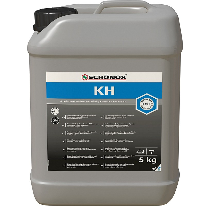 Jednosložková penetrace Schönox KH 5 kg, na bázi akrylátových pryskyřic, odolná proti saponifikaci, sloužící ke snížení savosti a zvýšení adheze cementových podkladů a k ochraně sádrových podkladů proti vlhkosti. Příprava savých, hladkých, porézních podkladů. Pro vnitřní i vnější použití. Výhodou jednoduchá aplikace a velmi nízká spotřeba. Ředí se vodou dle nasákavosti podkladu.