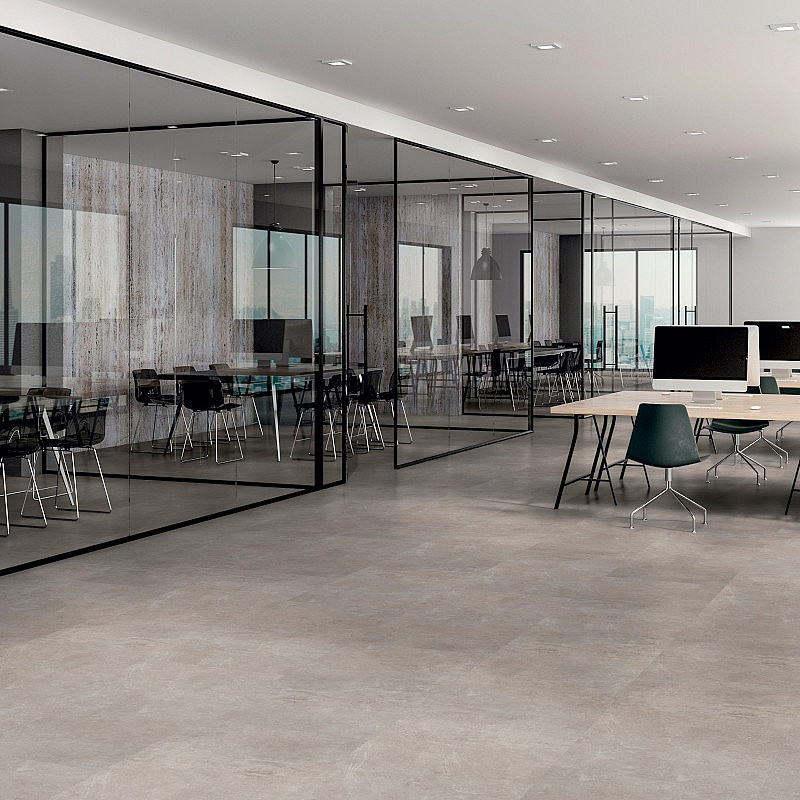 Lepená vinylová podlaha Expona Commercial 5034 Cement Uni se silnou nášlapnou vrstvu je vhodná do zatěžovaných prostorů v domácnostech i ve veřejných prostorech. Silná nášlapná vrstva (0,55 mm) ji řadí do zátěžové třídy 33, a to znamená, že obstojí i v náročných podmínkách frekventovaných místností. Na podlaze lze používat židle nebo nábytek s kolečky typu W.
