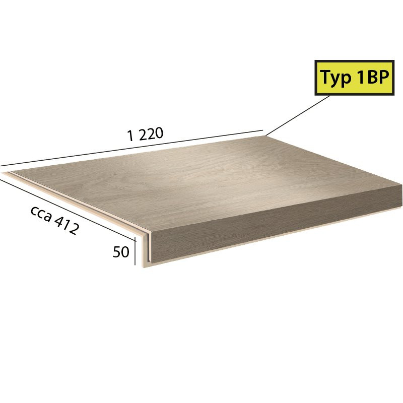 Vinylové schody v dekoru Objectline Step - 9871 Dub Toledo krémový, dílec 2BL – schod s nosem pro orevřené schodiště z levé strany (boční úprava zleva).